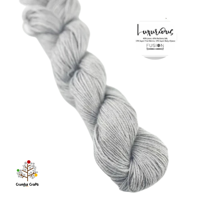 Fingering / 4-ply: 40% Linen, 40% Silk, 10% Super Fine Baby Alpaca and 10% Super Fine Merino. Use only the yarn stated. Other yarns may give different results. Quantities are approximate as they can vary between crocheters.