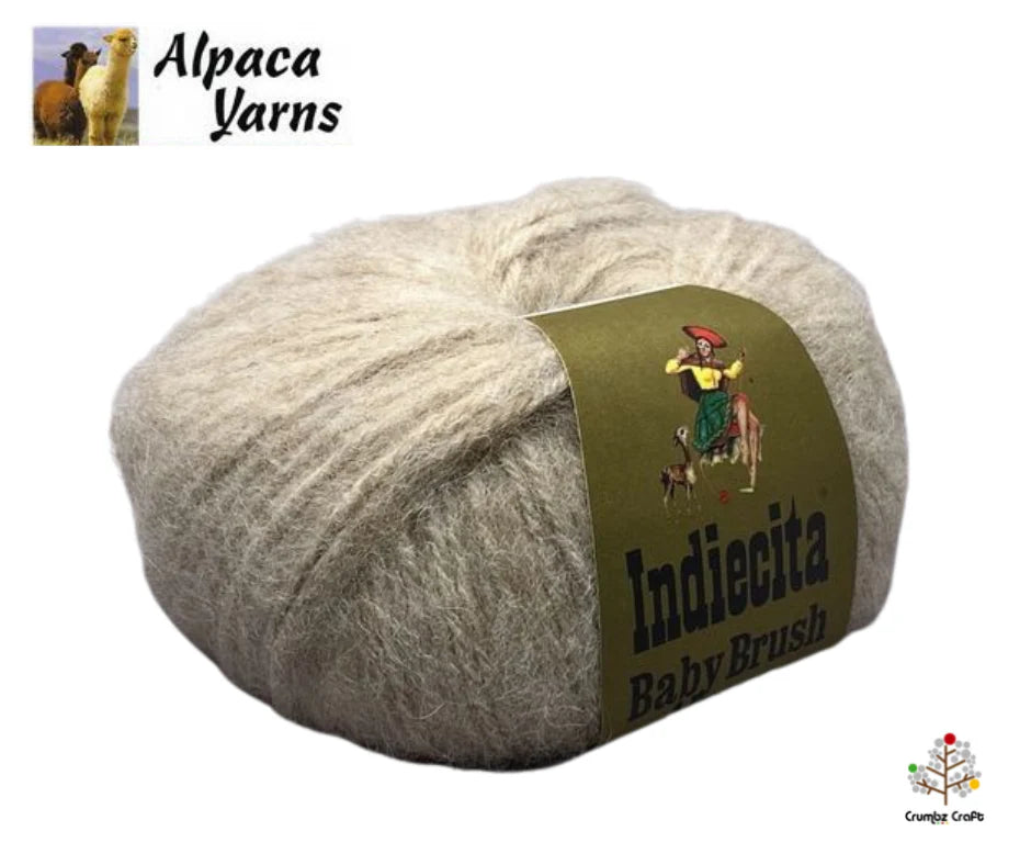 10 balls of Indiecita Baby Brush Alpaca 14 ply in your choice of colour. The colour used in the cover photo is Vivid Turquoise M4402