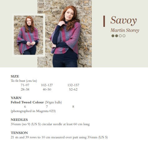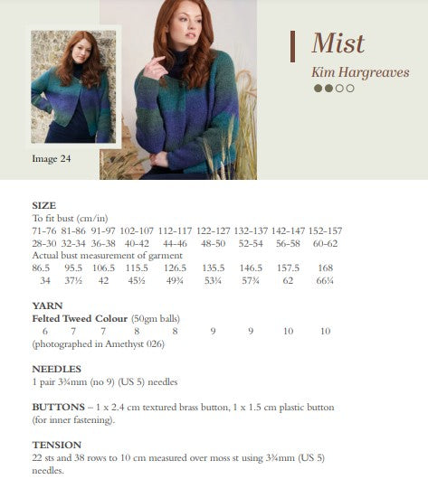 A collection of classic Felted Tweed sweaters, cardigans and accessories reworked in Kaffe Fassett’s self striping Felted Tweed Colour.